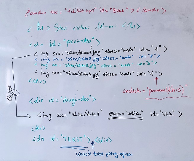 - Prelaskom miša preko velike slike treba da se čuje zvuk, a kada miš "izađe" sa područje velike slike, onda taj zvuk treba da prestane.