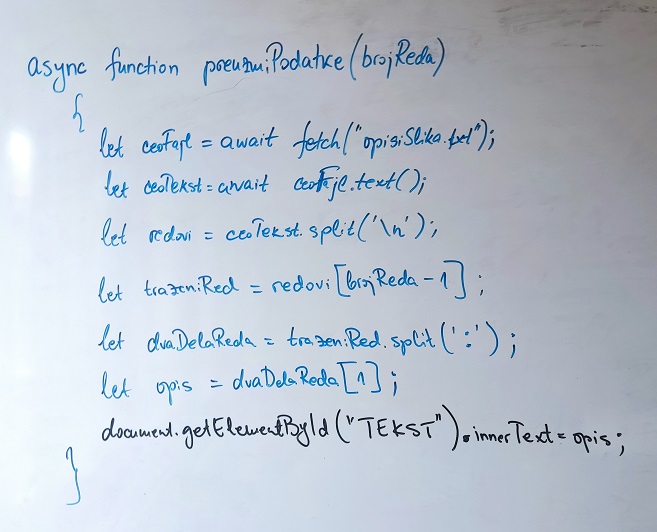 - Čak i kada treba preuzeti podatke, iz elementa se ovde preuzme id i iskoristi za preuzimanje određenog opisa iz fajla