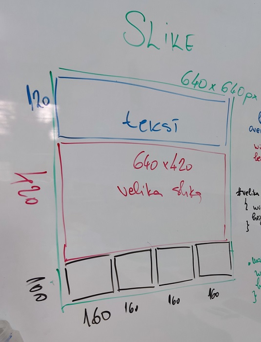 - Napomena: treba obratiti pažnju da prilikom postavljanja tag-ova za slike nema razmaka između njih - razmak ili novi red će dovesti do toga da se između slika nalazi mali prazan prostor, što onda menja izgled svega