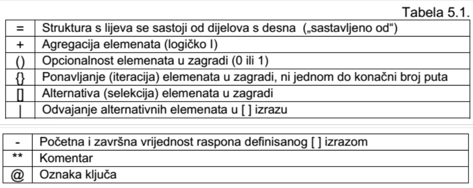 upotrebljava BNF notacija (Backus-Naur Form), koja se inače koristi
