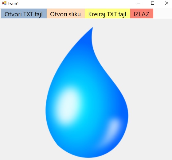 Klikom na "Otvori sliku" treba da se otvori nova forma u kojoj se nalazi samo jedan pictureBox postavljen preko cele forme. Prilikom Loada forme treba da se od korisnika traži da odabere sliku koja će se prikazati