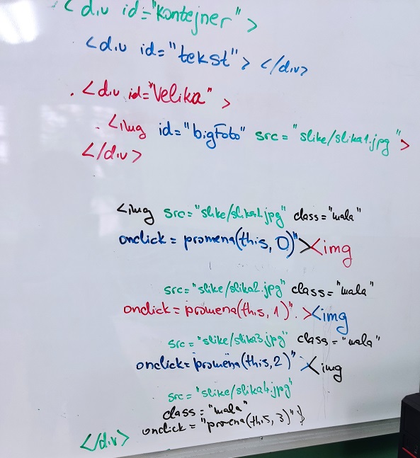 - Klikom na malu sliku treba da se ta slika prikaže u delu za veliku sliku, a opis da se prikaže u delu rezervisanom za opis.
