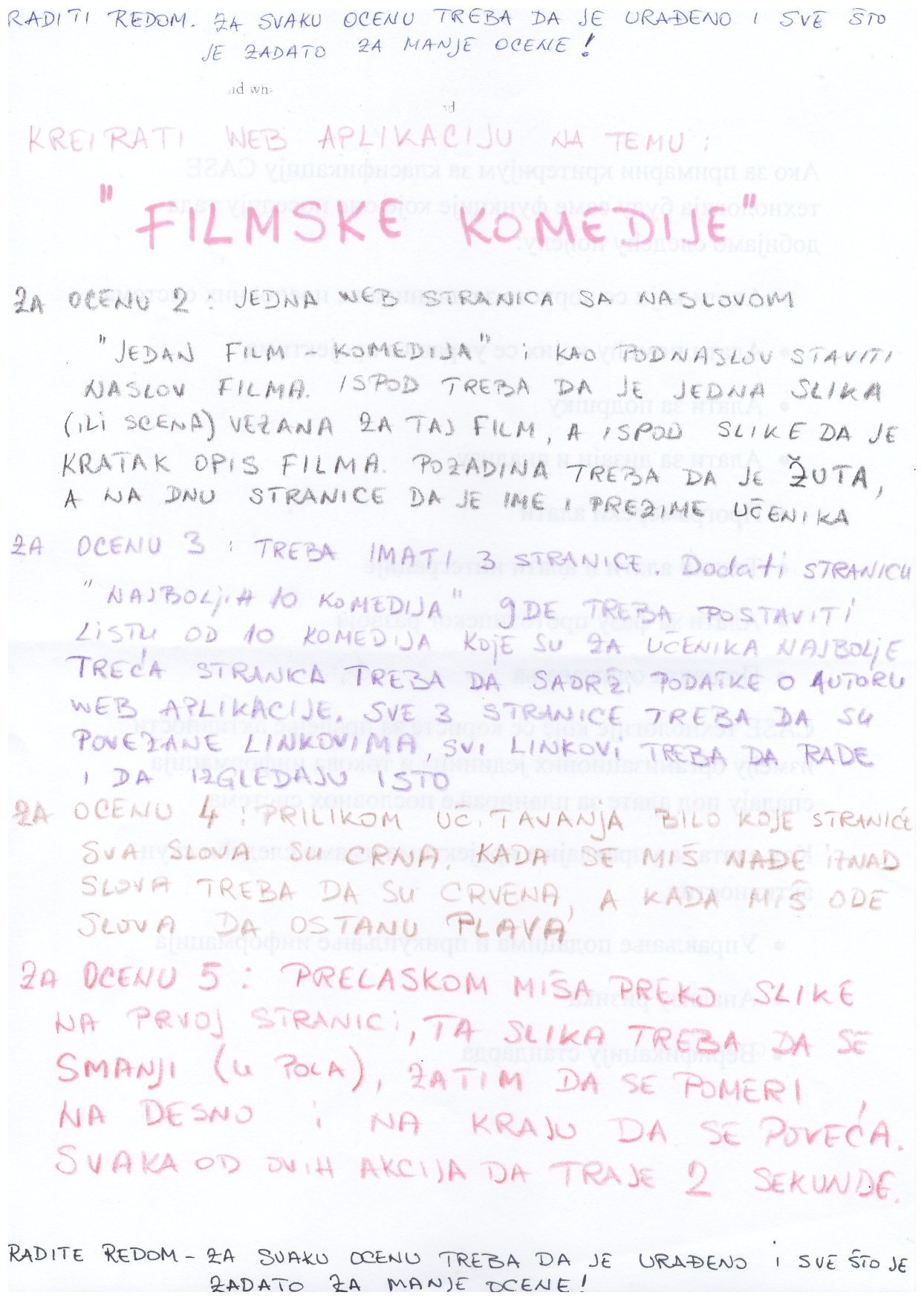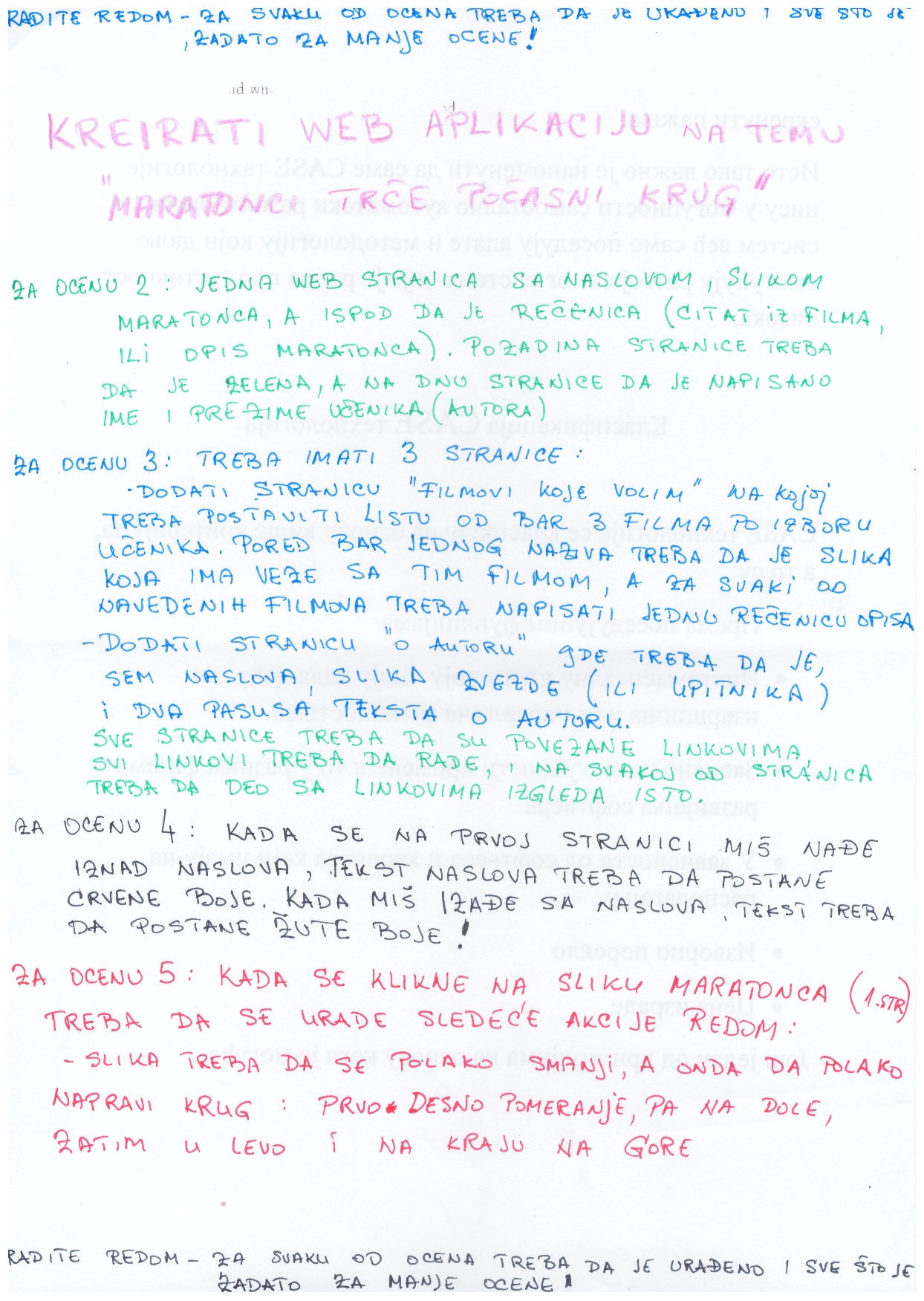 Napomena: Za ono što je traženo za ocenu 4 potrebno je poznavanje JavaScripta ili jQuery, ali ...