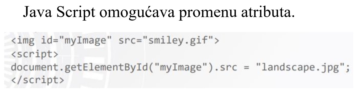 - setAttribute(imeAtributa,novaVrednost) - menja vrednost atributa HTML elementa