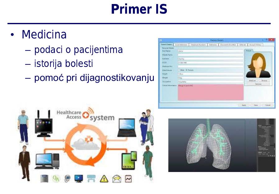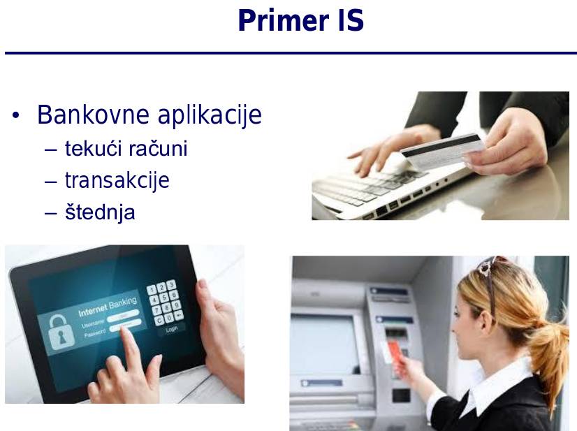 • Bankarstvo: Informacije o klijentima, računi, krediti, bankarske transakcije i sl.