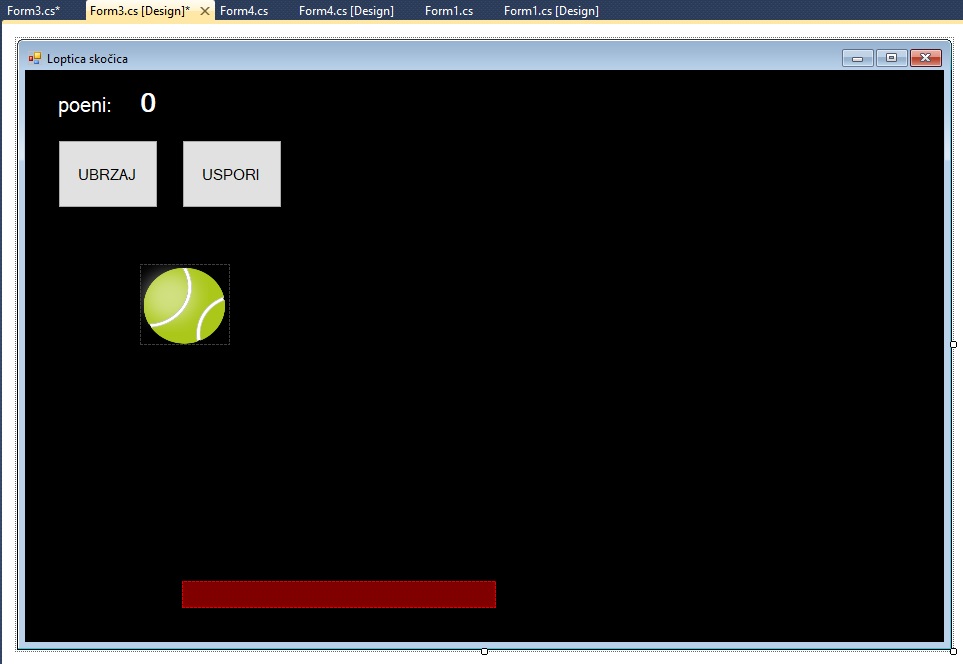 int poeni, smerX = 1, smerY = 1, korakX = 10, korakY = 15; - Kroz Property postaviti da je tajmer uključen (Enabled: