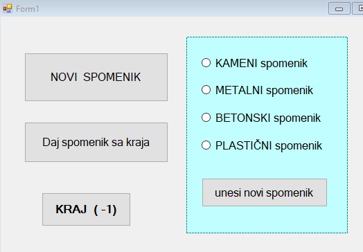 aplikaciju u kojoj se ubacuju spomenici u magacin, a kasnije izbacuju