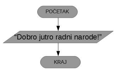 Zadatak: Ispisati na ekranu tekst: Dobro jutro radni narode!