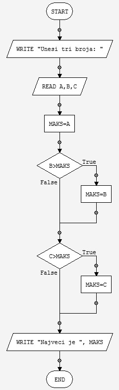 3- uvodimo promenjivu MAKS i dodelimo joj vrednost prvog ulaznog podatka